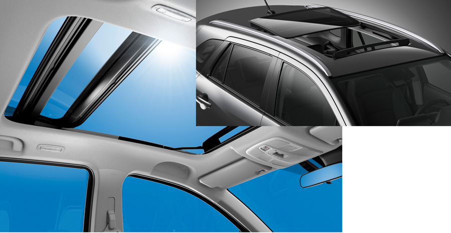 Dėl dvigubų slankiųjų stiklo plokščių panoraminio stoglangio anga itin didelė, todėl juo galima mėgautis iš bet kurios automobilio vietos.