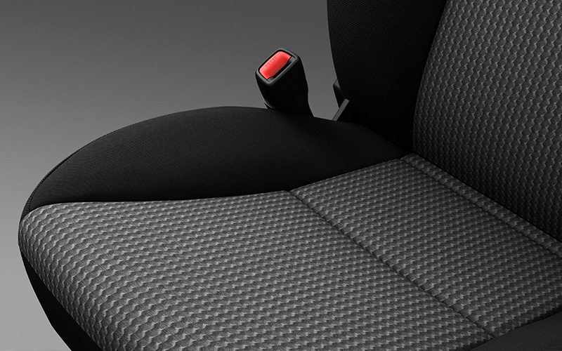 Elegantiškos ir ergonomiškos odinės sėdynės šonuose aptrauktos tikra oda, o per vidurį – įmantraus juostinio pynimo dirbtine oda, kuri pabrėžia tvirtą visureigio charakterį. Tokio pat stiliaus yra ir tekstilinių apmušalų dizaino paketas su reljefine medžiaga dengtu centriniu skydeliu.